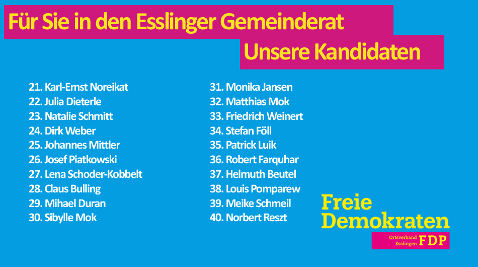 Unsere Kandidaten für Esslingen zur Kommunalwahl 2019
